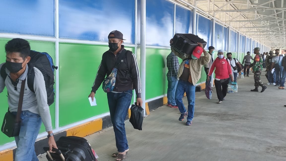 50 WNI dari Sabah Malaysia saat tiba di Nunukan Kalimantan Utara. (22/07/2021).