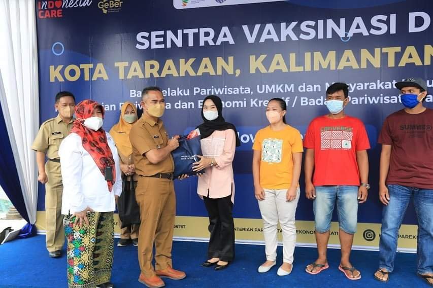 Vaksinasi yang ditargetkan untuk 500 warga masyarakat pelaku usaha pariwisata, pelaku UMKM, dan masyarakat umum selama dua hari hingga 9 November esok ini dihadiri langsung oleh Perwakilan Kementerian Pariwisata dan Ekonomi Kreatif dan dibuka langsung oleh Wali Kota Tarakan, dr. H. Khairul.