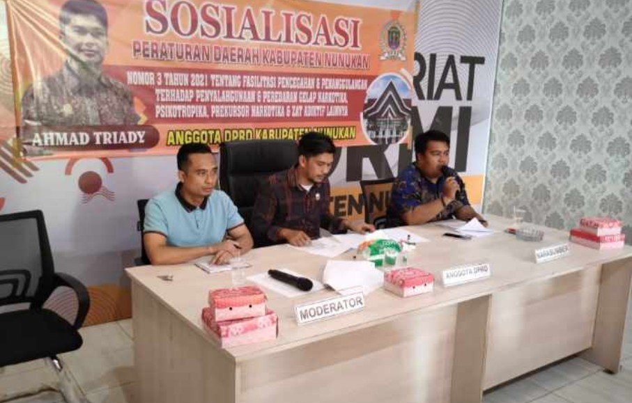 NUNUKAN, Kaltaraaktual.com– Ahmad Triyadi Anggota DPRD Nunukan mensosialisasikan Peraturan Daerah (Perda) Kabupaten Nunukan Nomor 03 Tahun 2021 Tentang Fasilitas Pencegahan dan Penanggulangan Terhadap Penyalahgunaan dan Peredaran Gelap Narkotika pada Minggu (22/05/22).
