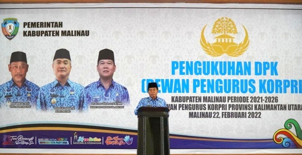 MALINAU, Kaltaraaktual.com– Gubernur Kalimantan Utara mengungkapkan Korps Pegawai Negeri (Korpri) menjadi garda terdepan dalam pelaksanaan reformasi birokrasi. Karena itu setiap anggota Korpri dituntut adaptif dalam menjawab perubahan zaman. Hal ini disampaikan Gubernur Kaltara, Drs H Zainal A Paliwang SH, M.Hum pada Pengukuhan Dewan Pengurus Korpri (DPK) Kabupaten Malinau di Ruang Laga Fratu Kantor Bupati Malinau, Selasa (22/2/2022).