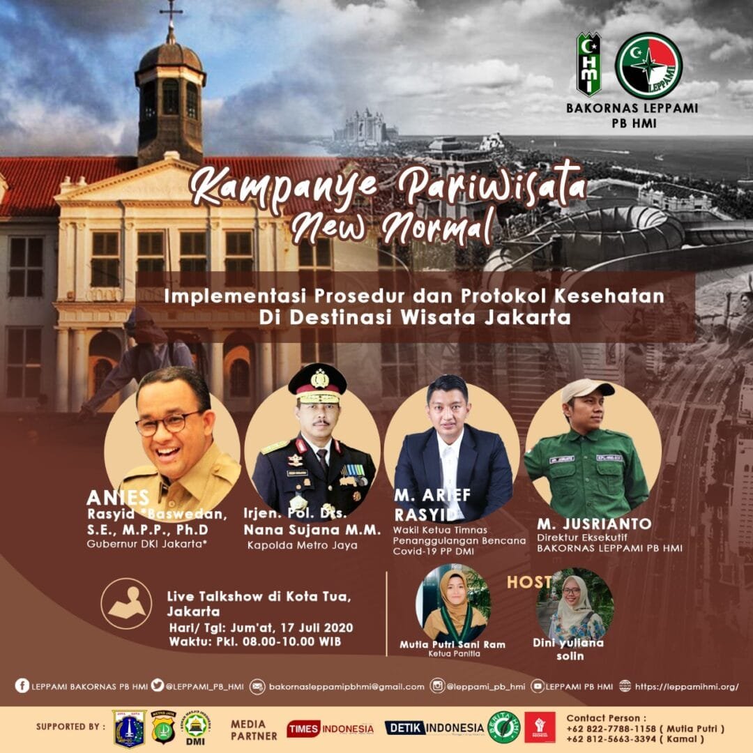 Bakornas LEPPAMI PB HMI akan mengawali Kampanye Pariwisata New Normal dari Ibu Kota, Jakarta, tepatnya di Museum Bahari pada Jum’at, 17 Juli 2020 secara offline, Kedepannya juga akan ke destinasi wisata di daerah-daerah lain.