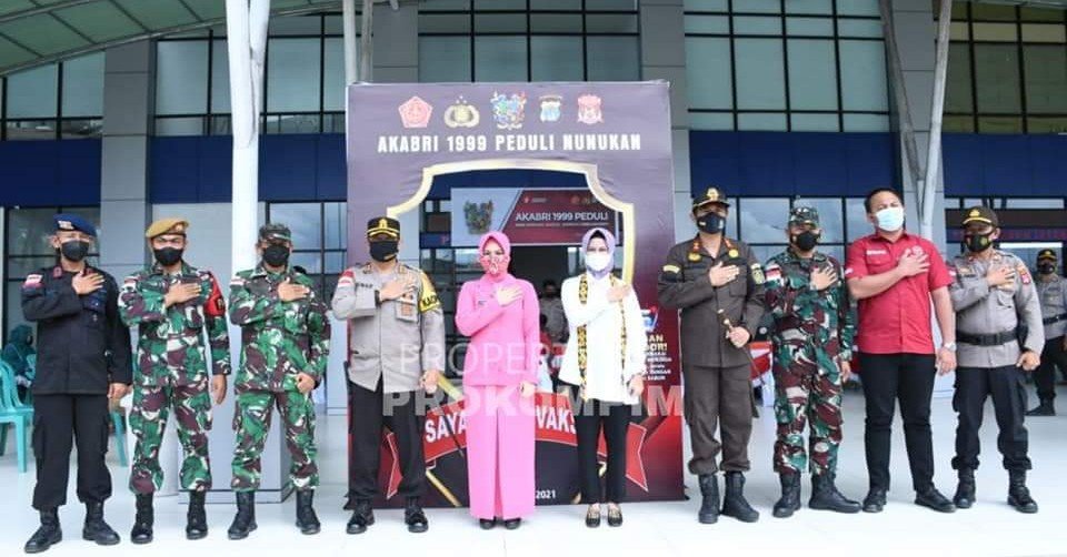 NUNUKAN, Kaltaraaktual.com– Bupati Nunukan Hj. Asmin Laura Hafid bersama Forkopimda Kabupaten Nunukan menghadiri kegiatan Akabri 1999 Peduli di Mapolres Nunukan, Rabu (20/10). Akabri 1999 Peduli adalah kegiatan bhakti sosial yang dilaksanakan secara serentak di seluruh tanah air oleh Alumni Akademi Angkatan Bersenjata Republik Indonesia (Akabri) yang lulus pada tahun 1999.