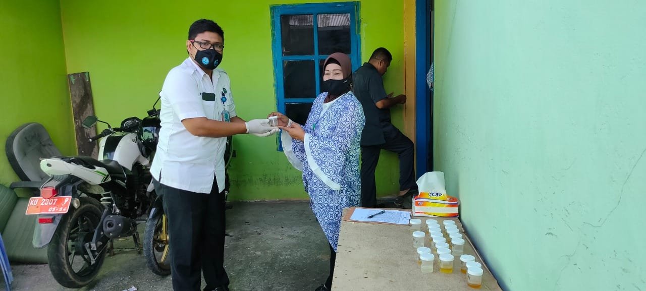 Peserta melaksanakan registrasi dan secara bergantian memasuki toilet yang telah disediakan untuk pengambilan sampel urine sesuai dengan SOP dan menyetor sampel urine kepada petugas BNN, total didapatkan 34 sampel urine.