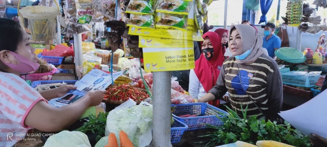 NUNUKAN, Kaltaraaktual.com – Hj. Rachmawati Zainal, istri calon gubernur Kalimantan Utara nomor urut 3 Drs.H.Zainal Arifin Paliwang, SH.M.Hum, juga melakukan blusukan ke sejumlah pasar tradisional di Kabupaten Nunukan untuk mengampanyekan sang suami, Rabu (21/10/2020).