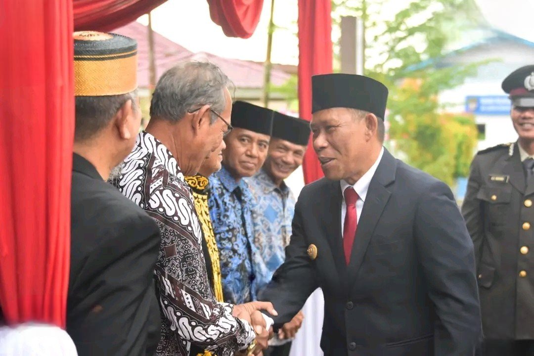 TANJUNG SELOR, Kaltaraaktual.com- Bupati Bulungan, Syarwani didampingi Wakil Bupati Bulungan, Ingkong Ala mengikuti upacara dan syukuran Hari Bhayangkara ke 78 Tahun 2024 di Lapangan Apel Polresta Bulungan di Jl Agathis, Tanjung Selor pada Senin (01/07/24).