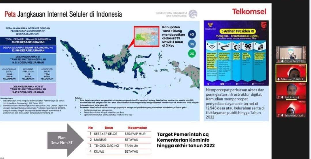 TANA TIDUNG, Kaltaraaktual.com– Bupati Tana Tidung Ibrahim Ali lakukan pertemuan secara Virtual, melalui Zoom Meeting dalam agenda lanjutan dari koordinasi antara pihak Pemerintah Daerah dan Kementerian Kominfo dalam hal ini  pihak Telkomsel di Ruang Rapat Bupati, (24/09/2021).