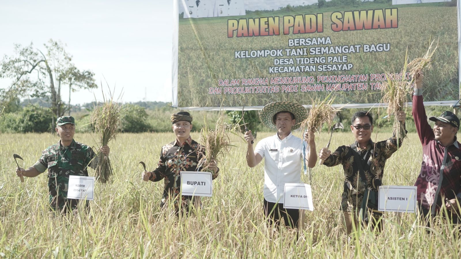 TIDENG PALE, Kaltaraaktual.com– Bupati Tana Tidung (KTT) Ibrahim Ali melakukan Panen Padi Sawah bersama Kelompok Tani Semangat Bagi, di Desa Tideng Pale Kecamatan Sesayap, pada Kamis, (24/02/22).