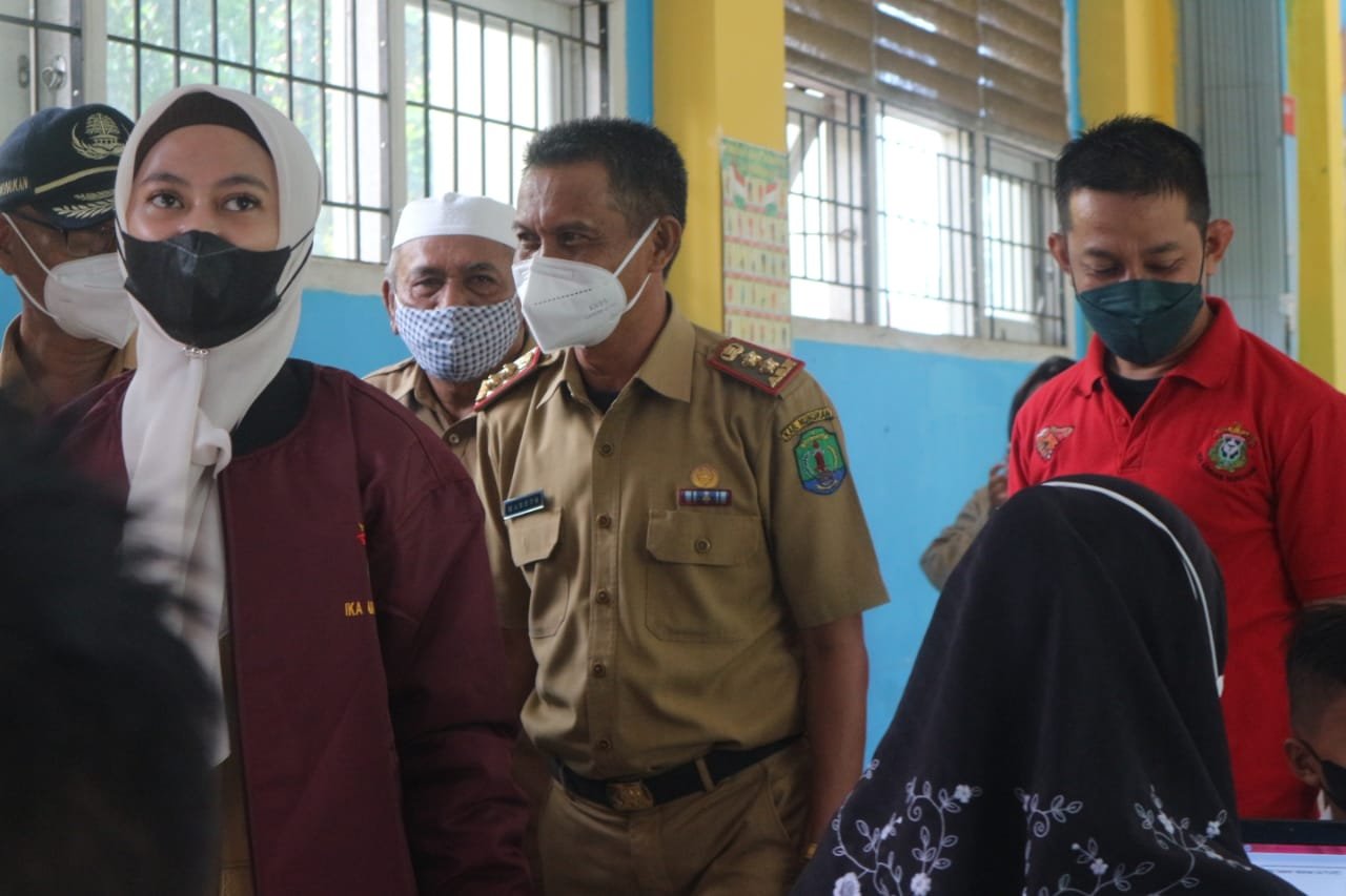 Tampak saat Bupati Nunukan Hj. Asmin Laura Hafid memantau vaksinasi pelajar didampingi kepala dinas pendidikan dan kebudayaan (Disdikbud) Kabupaten Nunukan, H. Junaidi.