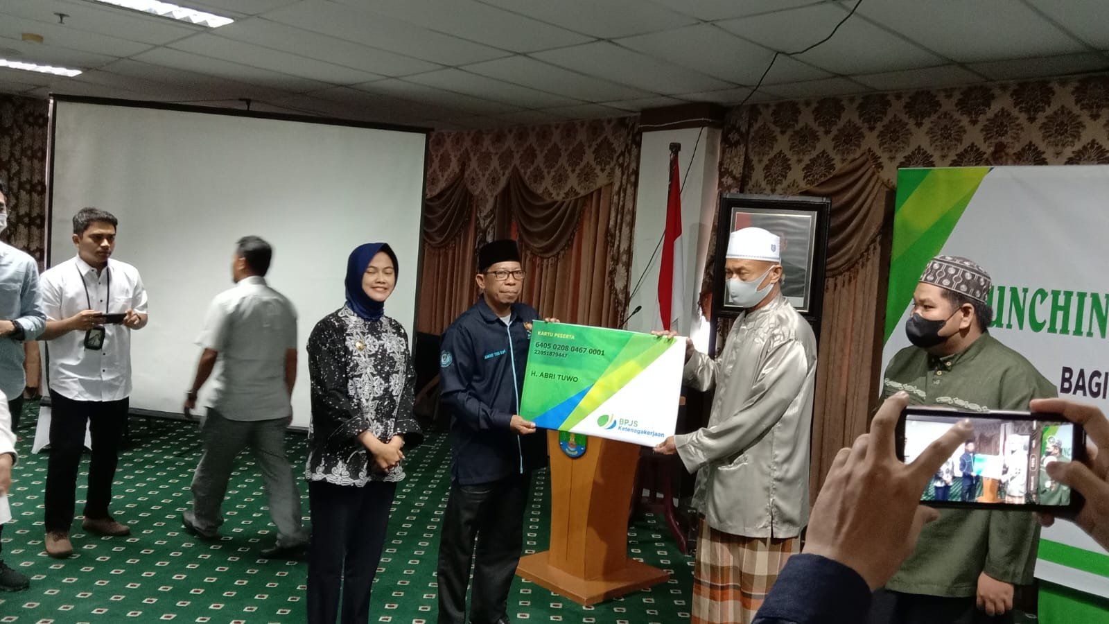 Acara ini juga dirangkaikan dengan penyerahan secara simbolik kartu kepesertaan non ASN, santunan kematian dan beasiswa kepada dua anak peserta BPJS Ketenagakerjaan yang meninggal.