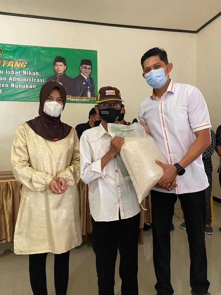 Selain penyerahan dokumen isbat, sekitar 50 orang juga menerima bantuan berupa beras untuk masyarakat kecamatan tulin onsoi yang kurang mampu bertempat Ruang Pertemuan Penginapan Dwi Puteri Aulia, Jumat (23/04/2021).