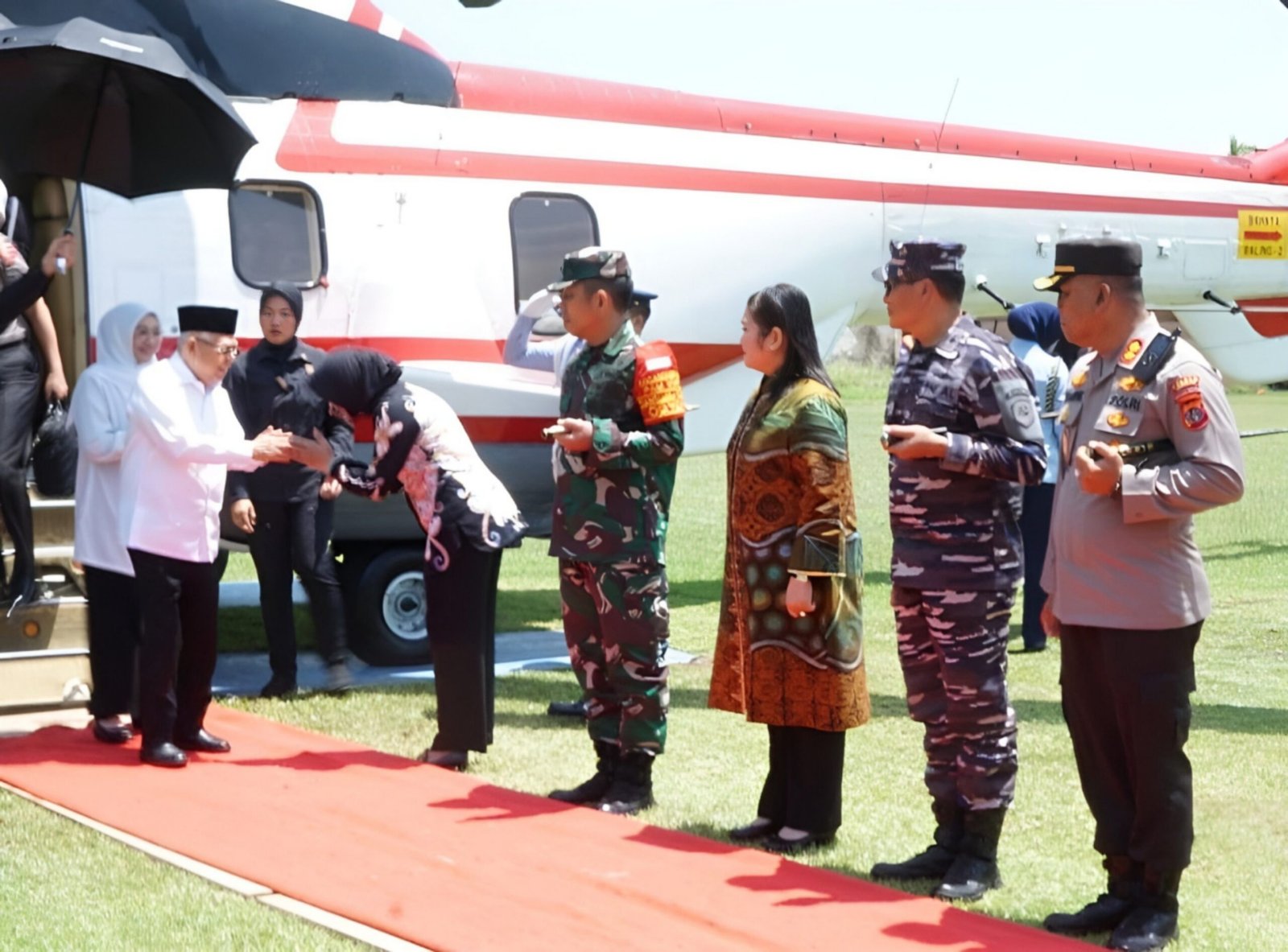 istrinya Hj. Wury didampingi Gubernur Gubernur Kaltara Drs H Zainal Arifin Paliwang S.H, M.Hum dan Hj Rachmawati Zainal S.H. tampak Bupati Nunukan menyambut wapres bersama unsur Forkopimda Nunukan.