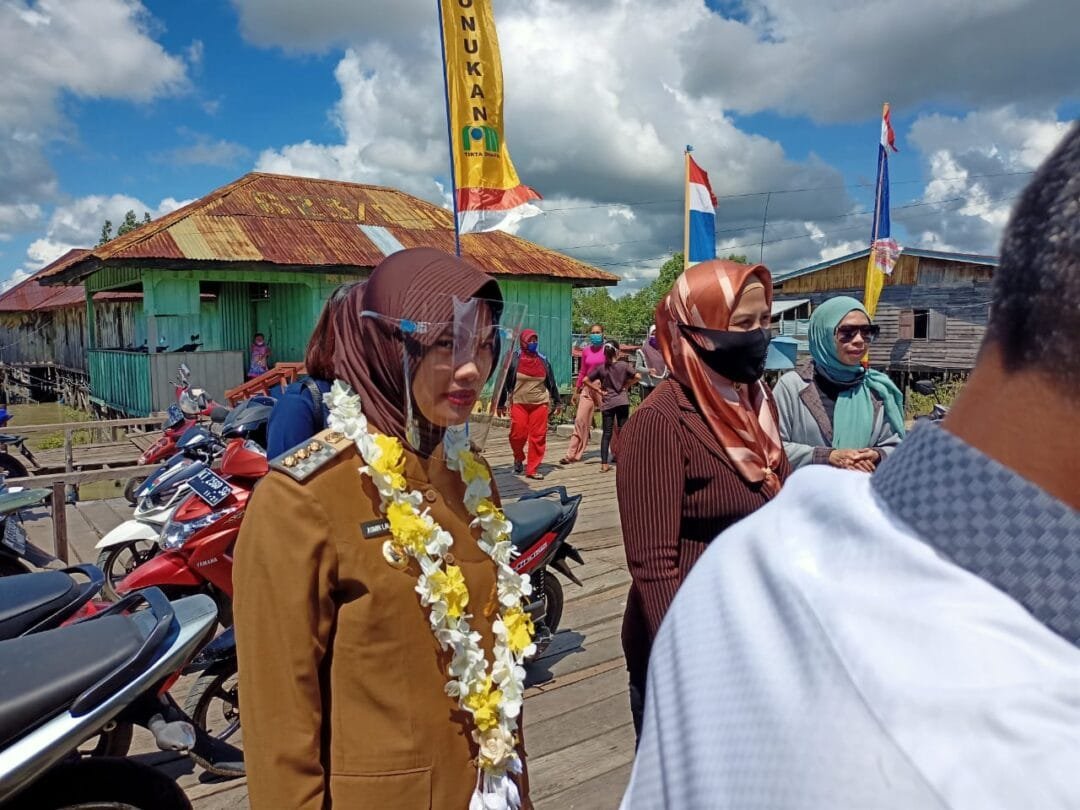 Bupati Nunukan, Hj. Asmin Laura Hafid beri sambutan saat peresmian Bangunan Penjemuran Rumput Laut, IPAS Dan Mesin Pencacah Plastik, di Kelurahan Tanjung Harapan (Nunukan Selatan). Senin (21/09). Sumbe Foto: Istimewa