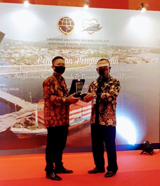 Ia menjelaskan penghargaannya untuk kategori program kegiatan Pelayanan Angkutan Barang Tol Laut, Angkutan Kapal dan Perawatan Kapal Perintis 2020, Pemerintah Daerah Pemenang III dengan capaian muatan terbanyak semester I.