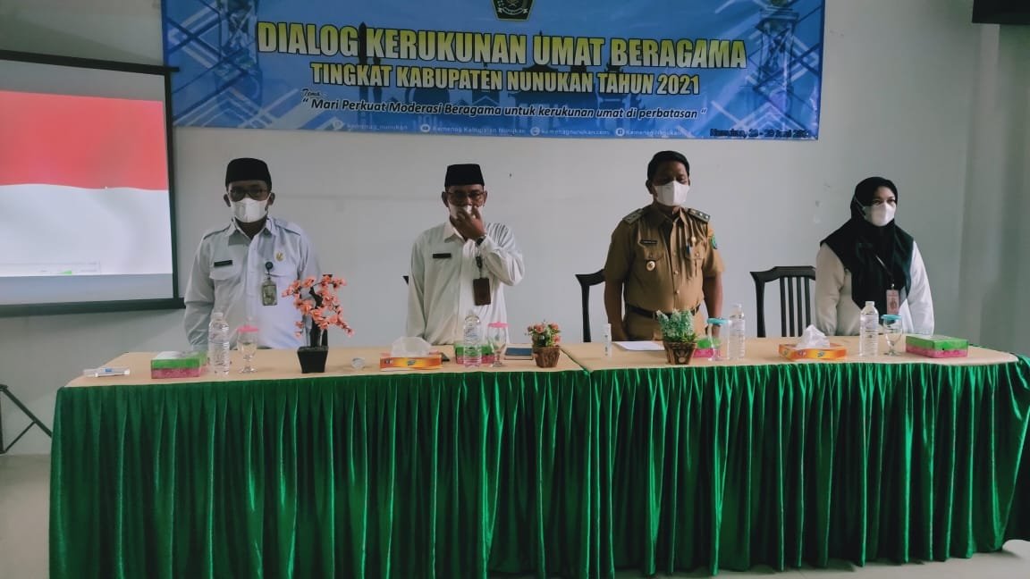 NUNUKAN, Kaltaraaktual.com– Forum Komunikasi Antar Ummat Beragama (FKUB) Nunukan laksanakan Kegiatan Dialog antar Agama, Nampak juga hadir Wakil Bupati Nunukan H.Hanafiah, Kepala Kemenag Nunukan H.Saleh, perwakilan Kakanwil Kaltara, dan para tokoh-tokoh Agama lainnya, Senin (28/06/2021).
