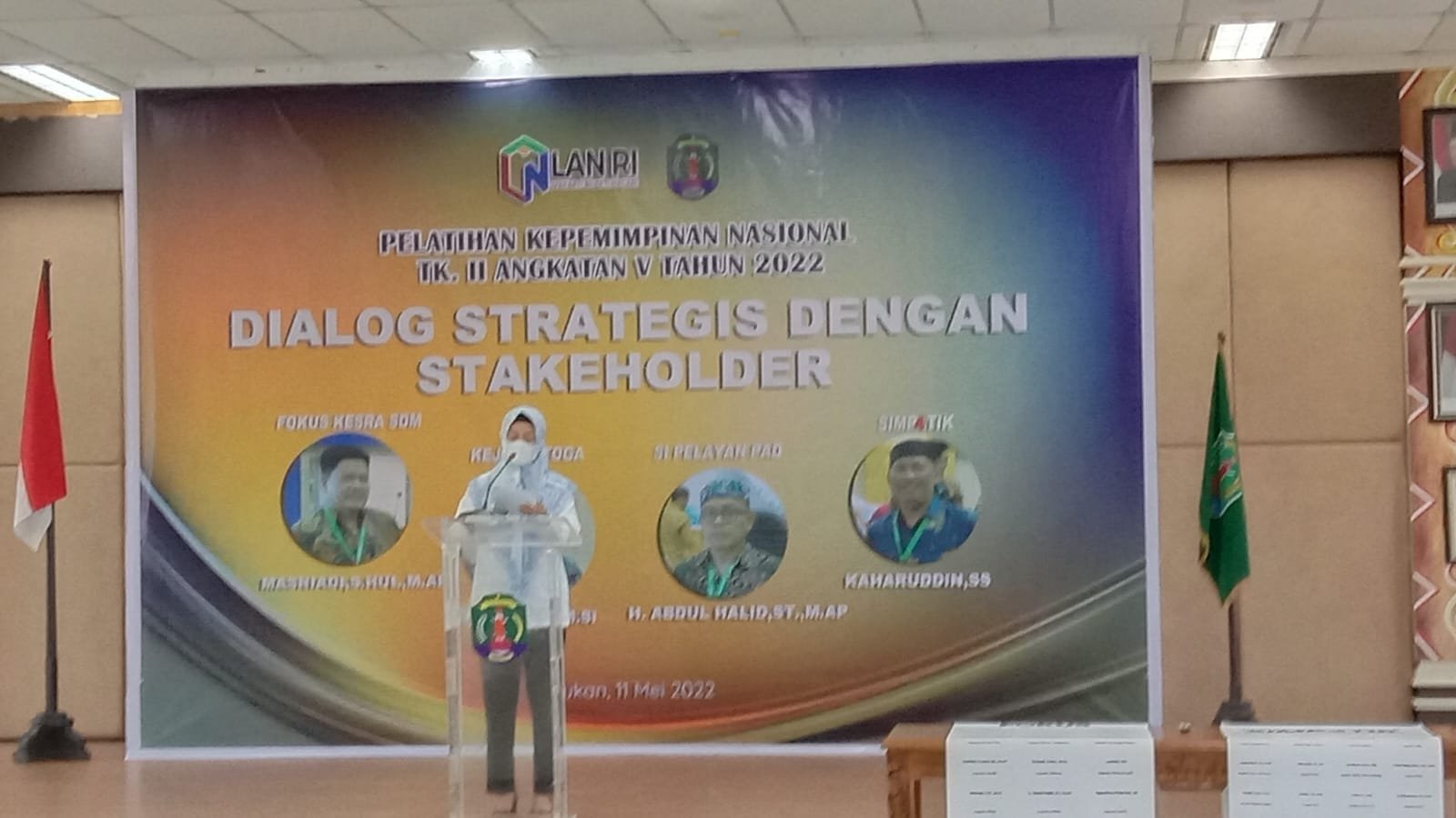 NUNUKAN, Kaltaraaktual.com– Bupati Nunukan Hj Asmin Laura Hafid membuka acara Dialog Strategis dengan Stakeholder Pelatihan Kepemimpinan Nasional (PKN) TK. II angkatan V Tahun 2022 di Kantor Bupati Lantai V pada Rabu (11/05/22).