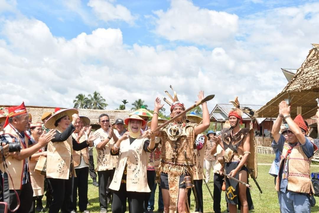 Bupati Laura mendapat penghormatan yang pertama menyumpit, kemudian dilanjutkan oleh Wagub Yansen, lalu Sekda Serfianus, dan disusul berturut turut para Camat se-Krayan, Kepala Bappeda Iwan Kurniawan, Danramil, Kapolsek Krayan dan Danpos Krayan Selatan.