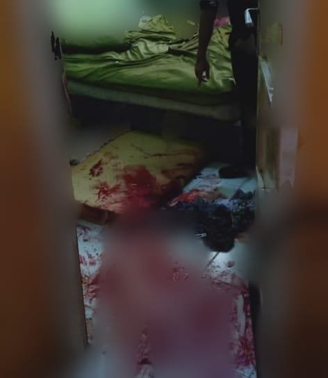 Kemudian saat itu pelaku yang hendak keluar kamar namun karena mengetahui kedatangan aparat kepolisian iapun kembali masuk dan mengunci pintu dari dalam setelah itu melakukan penusukan ke pada dirinya sendiri pada bagian dada ( percobaan bunuh diri) dengan luka sebanyak 2 bagian (yaitu di bagian dada dan jari).