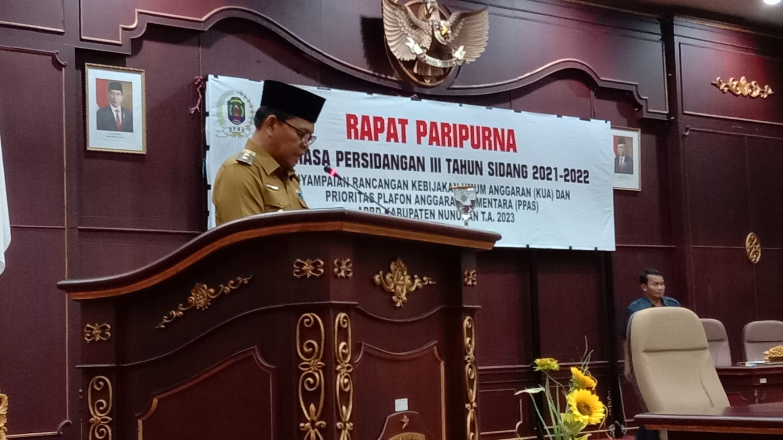NUNUKAN, Kaltaraaktual.com– Dewan Perwakilan Rakyat Daerah (DPRD Kabupaten Nunukan menggelar rapat paripurna ke 7 masa persidangan III tahun 2021-2022 terkait penyampaian rancangan kebijakan umum anggaran (KUA) dan prioritas plafon anggaran sementara (PPAS) APBD Kabupaten Nunukan tahun anggaran 2023.