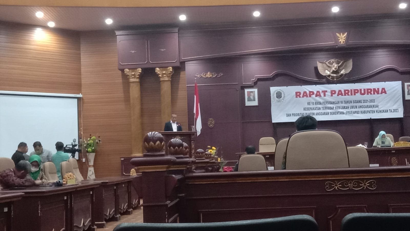 NUNUKAN, Kaltaraaktual.com– DPRD Nunukan menggelar Rapat Paripurna ke-10 Masa Persidangan III Tahun Sidang 2021-2022 dalam rangka kesepakatan terhadap Kebijakan Umum Anggaran (KUA) dan Prioritas Plafon Anggaran Sementara (PPAS) APBD Kabupaten Nunukan T.A 2023, Jumat (12/08/22).