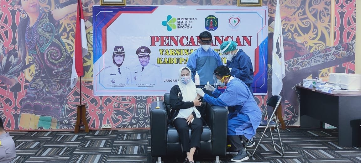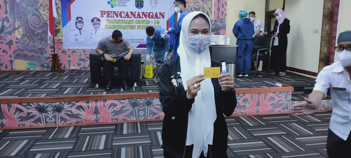 NUNUKAN, Kaltaraaktual.com– Bupati Nunukan, Hj.Asmin Laura Hafid adalah orang yang pertama disuntik vaksin Covid-19 dalam program pencanangan vaksinasi Covid-19 yang dilaksanakan di RSUD Nunukan, Kabupaten Nunukan, pada Rabu, (03/02/2021).