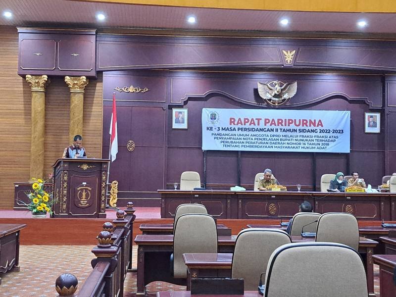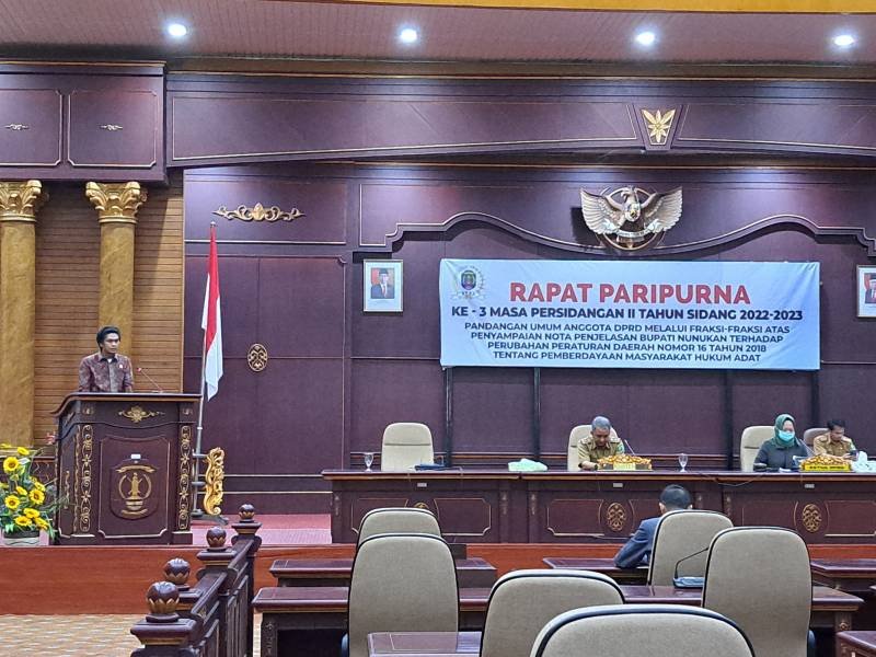 NUNUKAN, Kaltaraaktual.com– Rapat Paripurna ke-3 Masa Persidangan II Tahun Sidang 2022-2023. Pandangan Umum Anggota DPRD melalui Fraksi-fraksi Atas Penyampaian Nota Penjelasan Bupati Nunukan Terhadap Perubahan Peraturan Daerah Nomor 16 Tahun 2018 Tentang Pemberdayaan Masyarakat Hukum Adat.