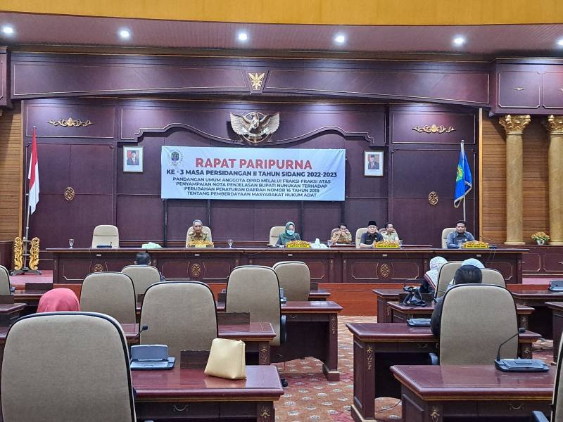 “Rapat paripurna hari ini adalah rapat ketiga, dalam rangka pandangan umum fraksi atas nota penjelasan Perda nomor 16 tahun 2018 tentang Pemberdayaan Masyarakat Hukum Adat,” kata Leppa.