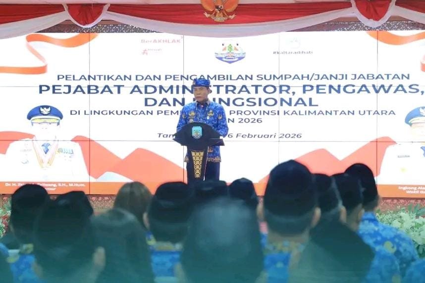 TANJUNG SELOR, Kaltaraaktual.com- Gubernur Kalimantan Utara (Kaltara), Dr. H. Zainal A. Paliwang, S.H., M.Hum., melantik dan mengambil sumpah/janji jabatan Pejabat Administrator, Pejabat Pengawas, serta Pejabat Fungsional di lingkungan Pemerintah Provinsi Kaltara, Jumat (06/02/26).
