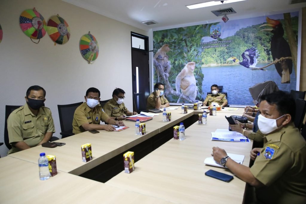 Tampak hadir mendampingi Gubernur Kaltara dalam acara virtual Entry Meeting di Ruang Rapat Gubernur pada Senin, (9/8), antara lain Sekretaris Daerah Provinsi Kaltara, Inspektur Kaltara, Ketua KPU, Ketua Bawaslu, Kepala Disperindagkop, dan Kepala Badan Keuangan dan Aset Daerah (BKAD).