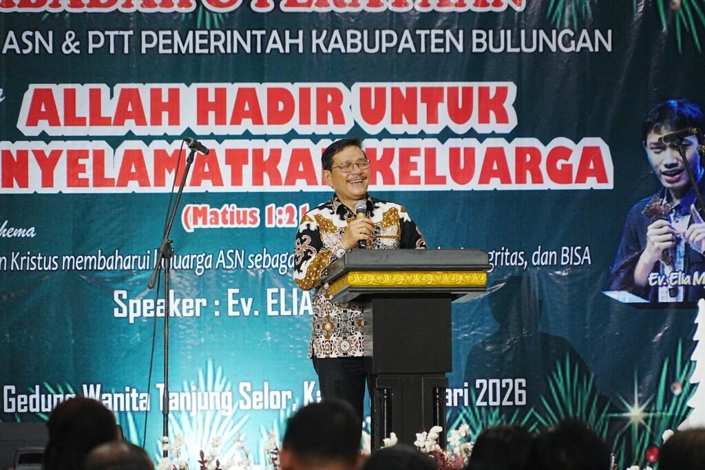 “Selamat Natal 25 Desember 2025 dan selamat Tahun Baru 1 Januari 2026 kepada bapak, ibu dan saudara sekalian para ASN dan PTT di lingkungan Pemerintah Kabupaten Bulungan, serta anggota TNI/Polri yang ada di Kabupaten Bulungan,” kata Wagub Ingkong.