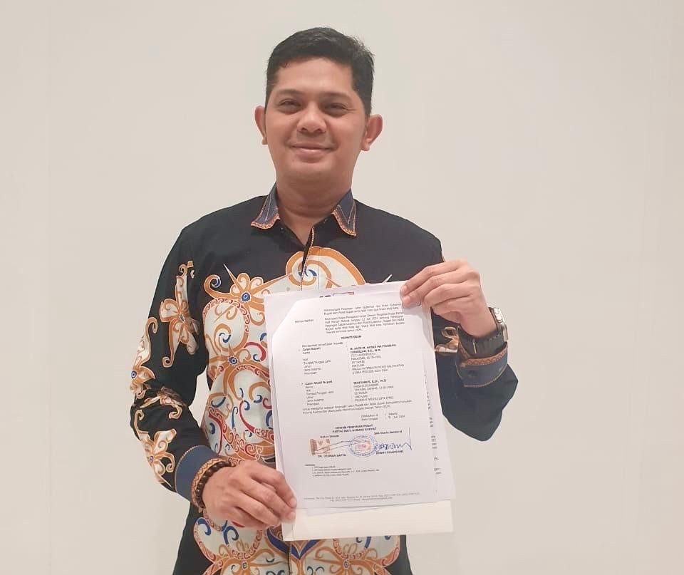 Calon Bupati Nunukan H. Andi M Akbar Djuarzah saat menunjukkan surat dukungan Model B Persetujuan Parpol KWK dari DPP Partai Hanura.