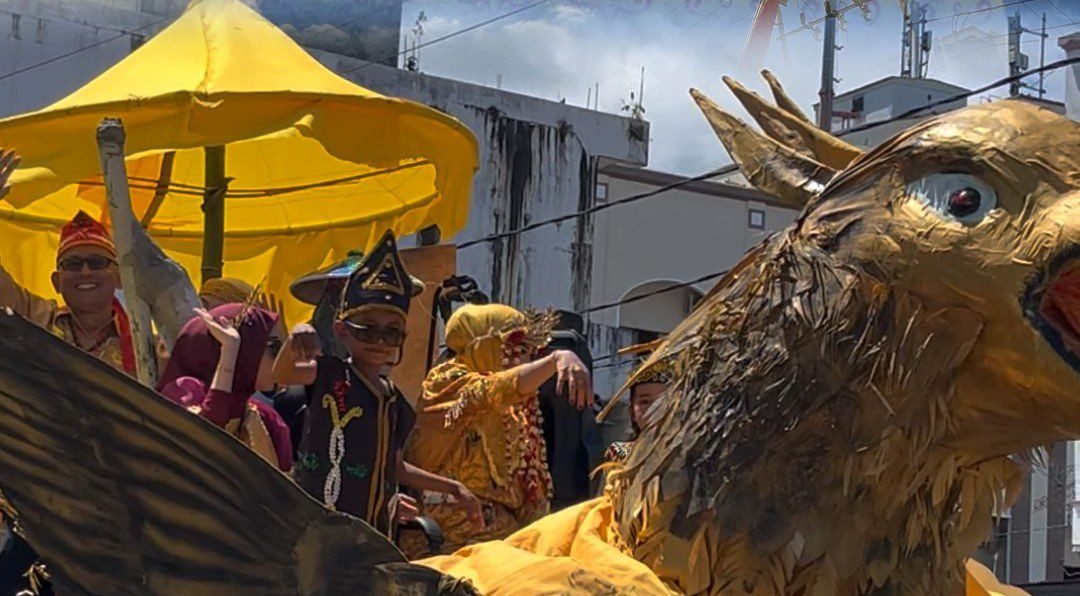 Tampilan yang tidak kalah menarik datang dari Badan Kesbangpol Nunukan, yang menghadirkan mobil hias berbentuk kereta kencana dengan ornamen Garuda. Desain megah dan tampilan simbolik kendaraan tersebut menjadi perhatian masyarakat yang hadir.
