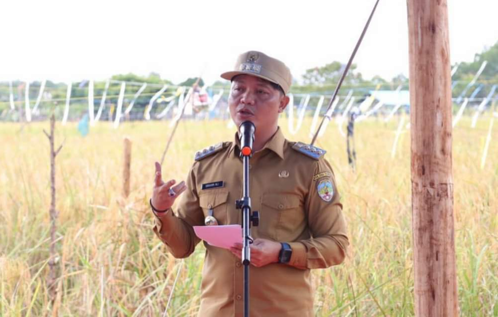 Sebelum Kegiatan Panen Padi Bersama dilaksanakan, Bupati Tana Tidung menyampaikan sambutannya dengan mengawali ucapan Terimakasih Kepada masyarakat petani Kecamatan Tana Lia.