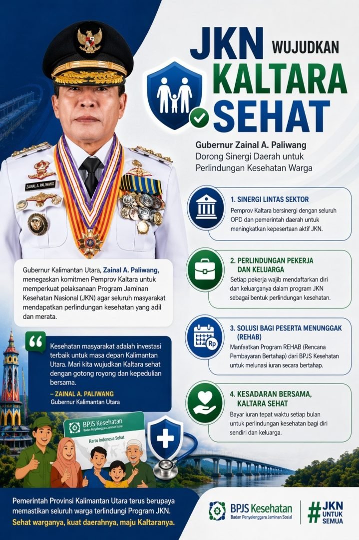 TANJUNG SELOR, KaltaraAktual.com– Gubernur Kalimantan Utara, Zainal Arifin Paliwang, menegaskan komitmen pemerintah provinsi dalam memperluas perlindungan kesehatan bagi masyarakat melalui penguatan program Jaminan Kesehatan Nasional (JKN).