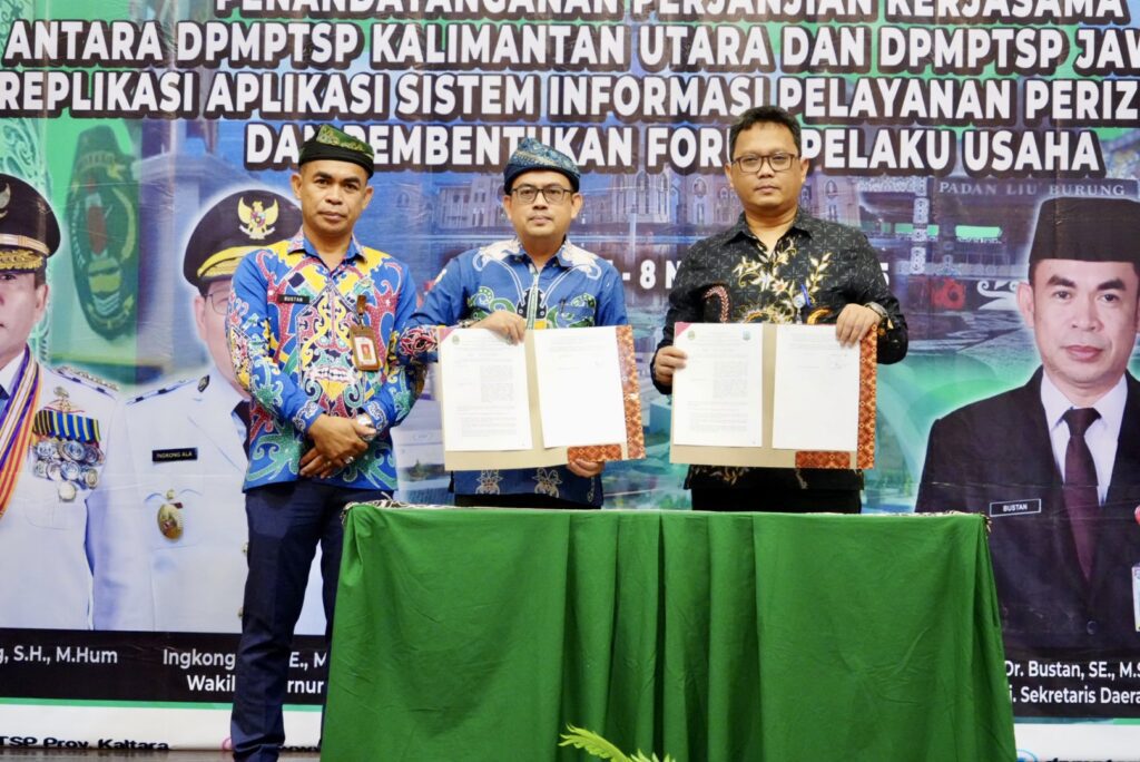 Penandatanganan kesepakatan bersama ini adalah terhadap replikasi sistem pelayanan perizinan andalan Kaltara, yaitu aplikasi Perizinan Sistem Online Kalimantan Utara (PESONA).