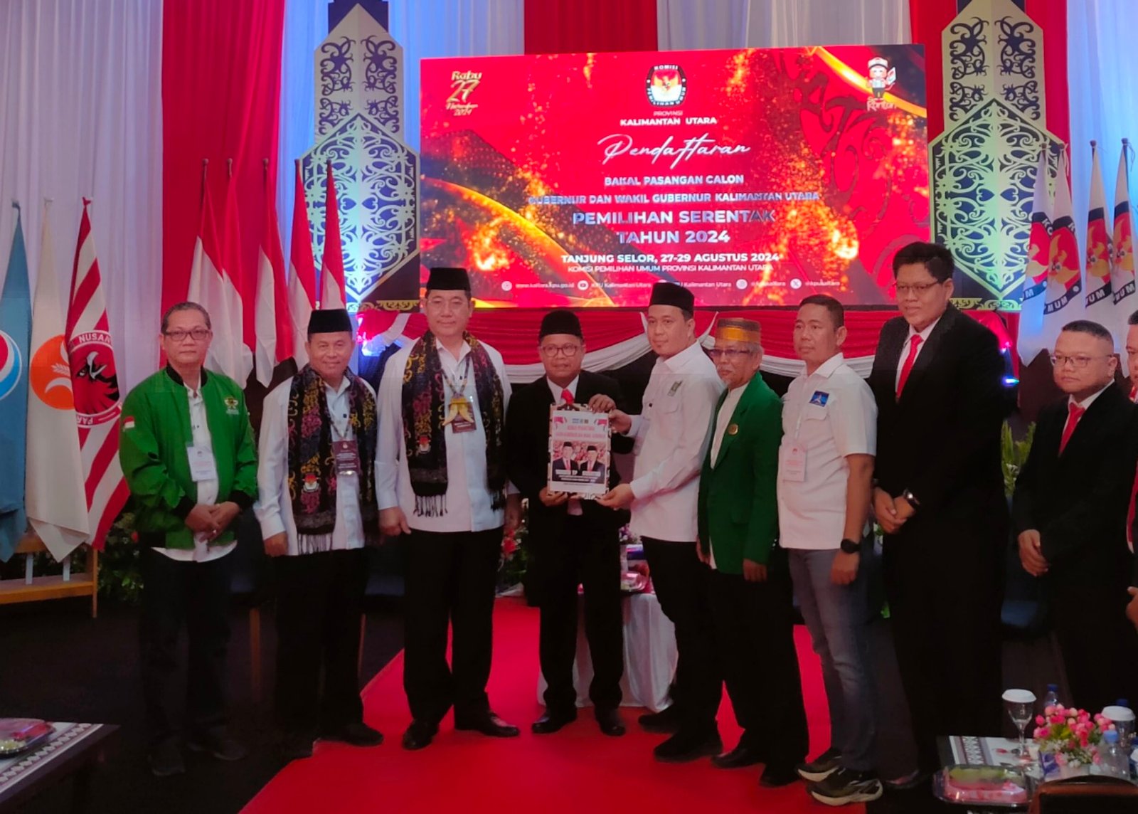 Yansen TP – Suratno diusung partai Demokrat, PKB dan PPP, Yansen TP l, datang ke kantor KPU mengenakan kemeja putih, disambut Ketua KPU Kaltara Hariyadi Hamid bersama komisioner penyelenggara lainnya.