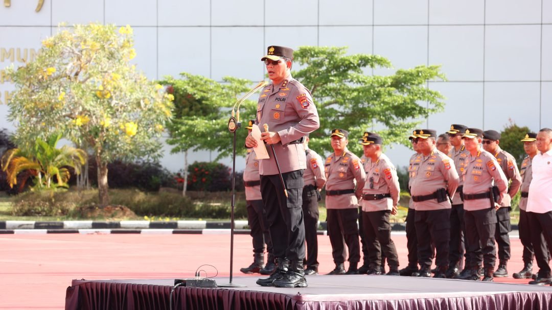 TANJUNG SELOR, KaltaraAktual.com- Kepala Kepolisian Daerah Kalimantan Utara, Irjen Pol. Djati Wiyoto Abadhy memimpin langsung pelaksanaan apel pagi di Lapangan Apel Mapolda Kaltara. Dalam arahannya, Kapolda menyoroti berbagai tantangan mulai dari dinamika ekonomi global hingga isu kesehatan personel yang menjadi prioritas utama dalam menjalankan tugas kepolisian. Senin (27/04/26).