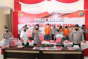 TANJUNG SELOR, Kaltaraaktual.com– Perihal penangkapan Oknum Polisi H, Kapolda Kaltara Irjen Pol Daniel Adityajaya bertempat di Ruang Selasar Command Center mengungkapkan kronologis serta sejumlah kasus yang menjerat polisi aktif di Polairud Polda Kaltara tersebut. melakukan jumpa pers pada Senin, (09/05/22).