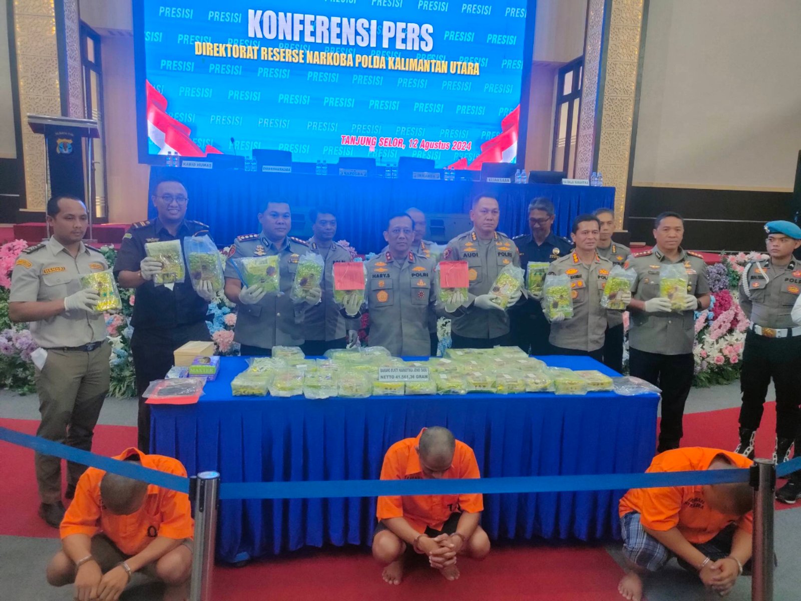 Kapolda Kaltara Irjen Pol Hary Sudwijanto, menyampaikan, dari pengungkapan dua kasus narkoba ini, diamankan barang bukti 42 kilogram dan tiga orang tersangka. Ketiganya merupakan kurir pengiriman narkoba ini.