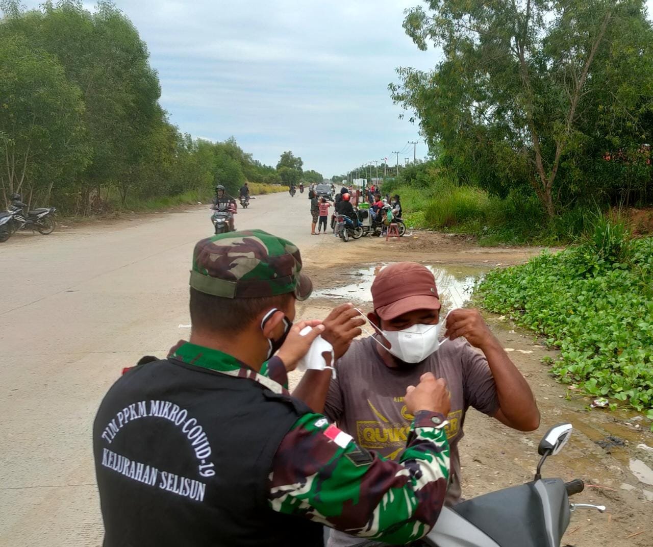Sementara itu Tim yang dipimpin langsung oleh Lurah Selisun Arif Rahmadi, dan seluruh staff kelurahan bekerja sama dengan Bintara Pembina Desa (Babinsa) membagikan masker kepada pengendara roda dua dan empat yang tidak memakai masker langsung diberikan masker secara gratis.