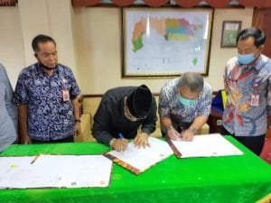 NUNUKAN, Kaltaraaktual.com – Plt. Kepala Balai Prasarana Permukiman Wilayah Kalimantan Utara Johannes Wahyu Kusuma Susanto mewakili Direktorat Jenderal Cipta Karya Kementerian PU PR dan PLT. Bupati Nunukan IR. H.Faridil Murad, SE.,MM menandatangani Berita Acara Serah Terima (BAST) dan Naskah Hibah Aset Barang Milik Negara Sektor Air Minum di ruang kerja Plt. Bupati Nunukan, Jumat (23/10).