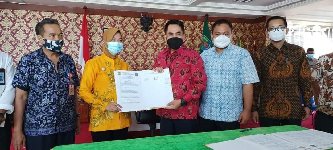 NUNUKAN, Kaltaraaktual.com– Bupati Nunukan Hj. Asmin Laura Hafid melakukan penandatanganan naskah dan berita acara serah terima hibah barang milik negara (BMN) dari Direktorat Jenderal (Dirjen) Cipta Karya Kementerian Pekerjaan Umum dan Perumahan Rakyat (PUPR) RI bertempat di ruang kerja Bupati Nunukan, Jumat (30/4).