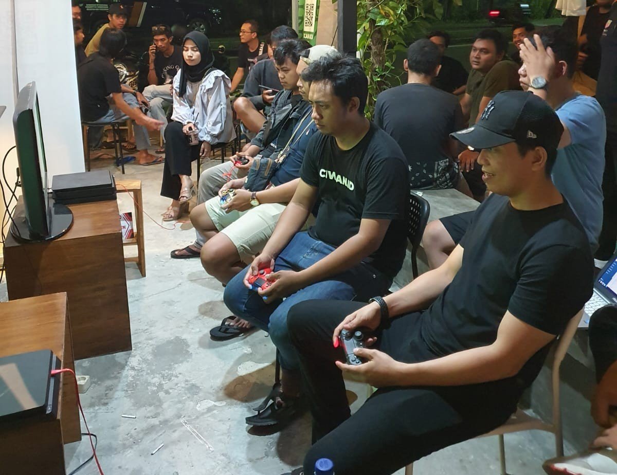 Ketua DPRD Tarakan Al Rhazali duduk di tengah dalam kegiatan pembukaan Turnamen PS 4 Football yang diselenggarakan oleh Kedai Kopi Ciwan.id. Sabtu, (10/09/22).