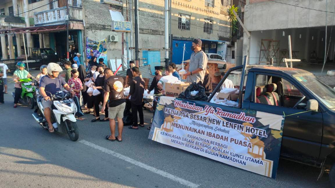 Manager Umum New Lenfin Hotel menjelaskan, bagi-bagi takjil yang dilakukan ini merupakan agenda tahunan yang dilakukan keluarga besar New Lenfin. Bahkan, takjil yang dibagikan merupakan hasil urunan keluarga besar New Lenfin.