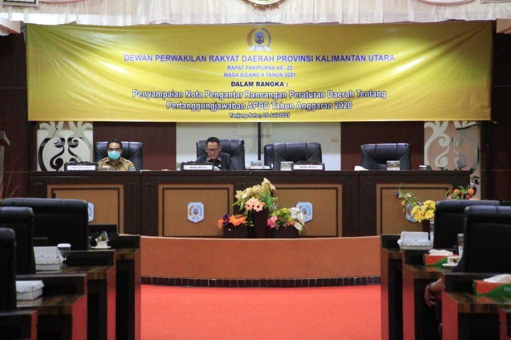 TANJUNG SELOR, Kaltaraaktual.com– Sekretaris Daerah (Sekda) Provinsi Kalimantan Utara (Kaltara), Suriansyah mewakili Gubernur Kaltara menyampaikan nota pengantar rancangan peraturan daerah tentang pertanggungjawaban Anggaran Pendapatan dan Belanja Daerah (APBD) tahun anggaran 2020 pada rapat Paripurna ke-22 di Kantor Sekretariat Dewan Perwakilan Rakyat Daerah (DPRD) Provinsi Kaltara.