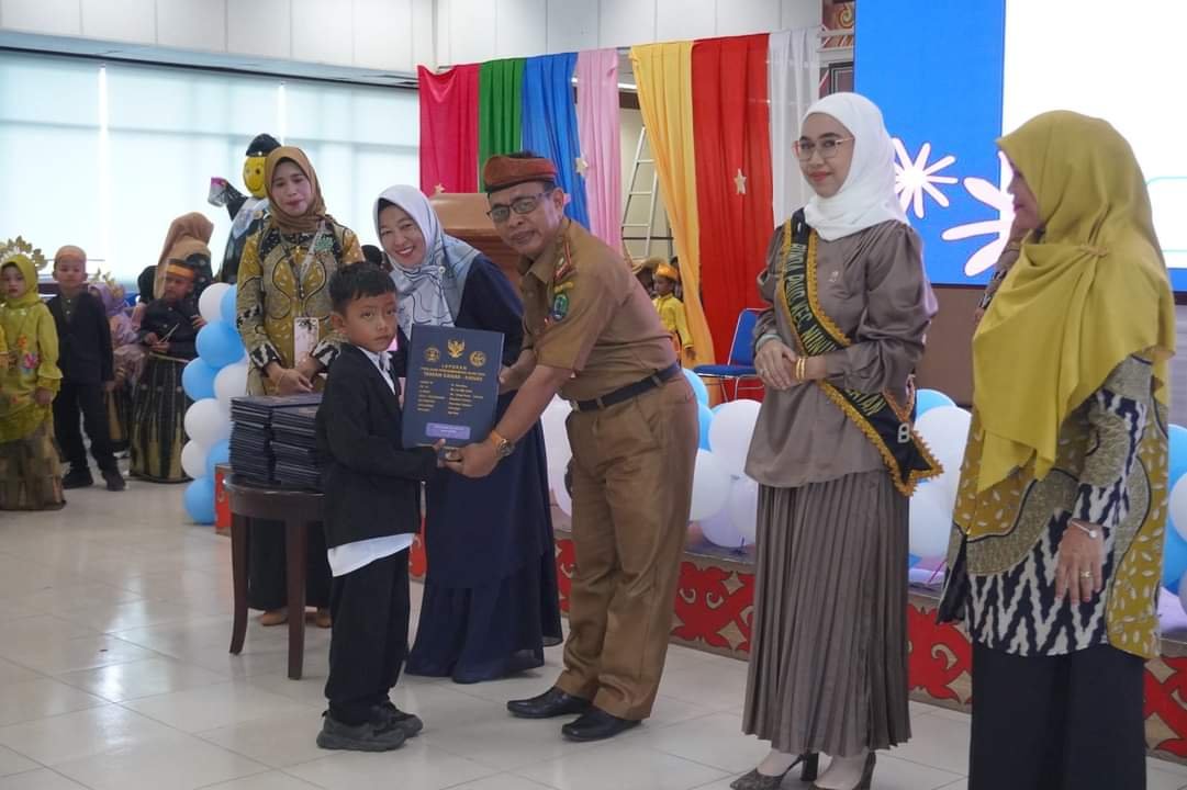 NUNUKAN, Kaltaraaktual.com– Senyum sumringah rona bahagia Muhammad Izzat Archa Darmawan, siswa TK Negeri Pembina Nunukan Selatan itu sepertinya tak terbendung lagi. Bersama 56 siswa lainnya Izzat bergembira dalam sebuah momen pelepasan dan gelar karya siswa siswi TK Negeri Pembina Nunukan Selatan Angkatan XVII Tahun Ajaran 2022-2023 yang digelar di Ruang Pertemuan Lt. V Kantor Bupati Nunukan, Selasa (20/06/2023).