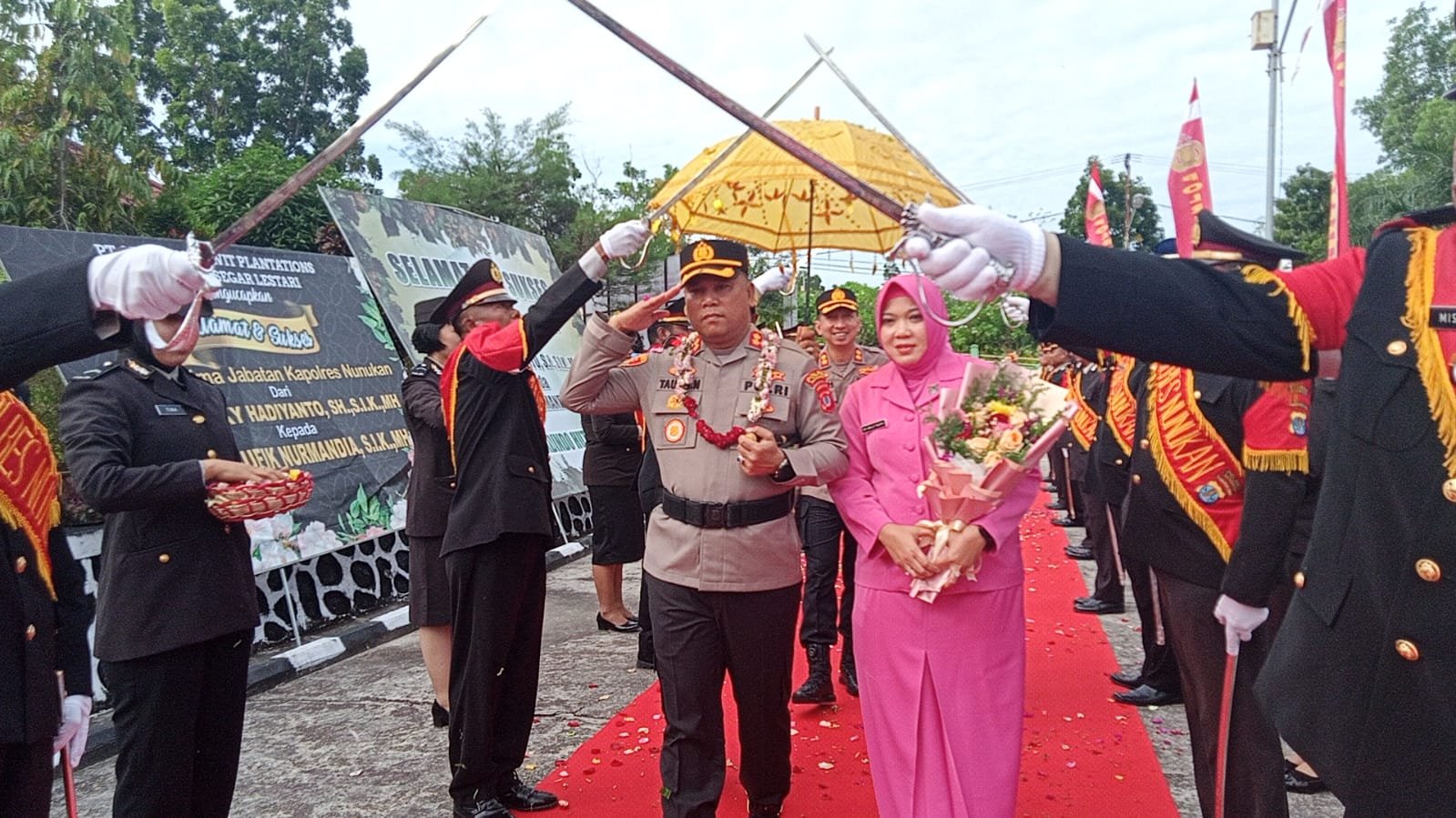 NUNUKAN, Kaltaraaktual.com– Kapolres Nunukan, AKBP Taufik Nurmandia remsi berkantor di Mako Polres Nunukan, Selasa (24/01/23). Kehadiran mantan Kapolres Tarakan itu, disambut prosesi Pedang Pora oleh pejabat utama di lingkungan Polres Nunukan.
