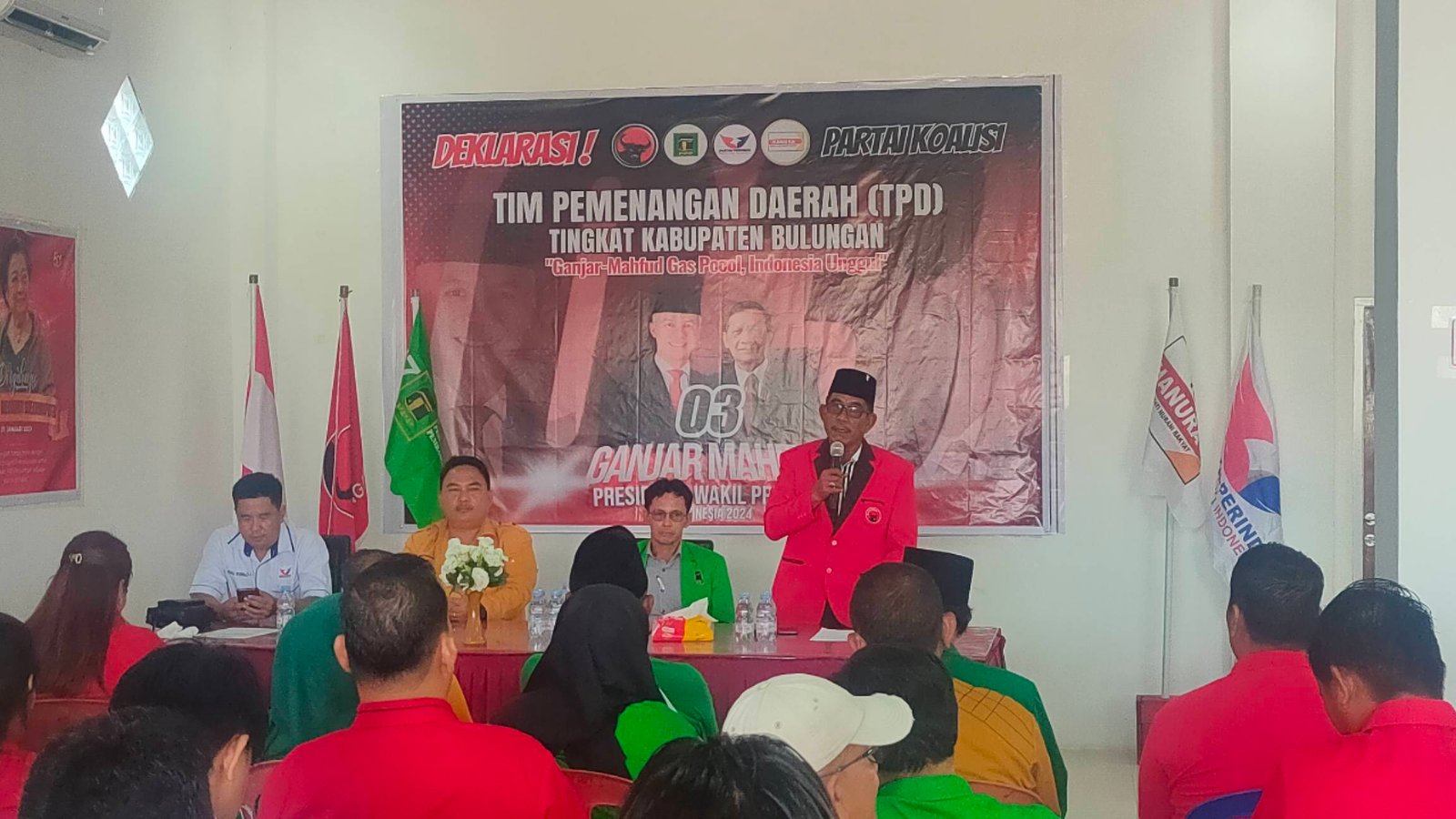 TANJUNG SELOR, Kaltaraaktual.com– Resmi, Tim Pemenangan Daerah (TPD) tingkat Kabupaten Bulungan bersama Dewan Pimpinan Cabang (DPC) PDI Perjuangan Kabupaten Bulungan dan partai pengusung lainnya menggelar deklarasi dukungan untuk pasangan Capres dan Cawapres nomor urut tiga Ganjar Pranowo-Mahfud MD.