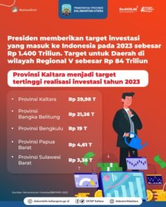 TANJUNG SELOR, Kaltaraaktual.com– Realisasi investasi Triwulan I tahun 2023 di Provinsi Kalimantan Utara (Kaltara) secara keseluruhan mencapai Rp 3,16 triliun, capaian realisasi