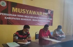 NUNUKAN, Kaltaraaktual.com – Bertempat di ruang rapat Komite Olahraga Nasional Indonesia (KONI) Nunukan, Persatuan Tenis Meja Seluruh Indonesia (PTMSI) Kabupaten Nunukan menggelar