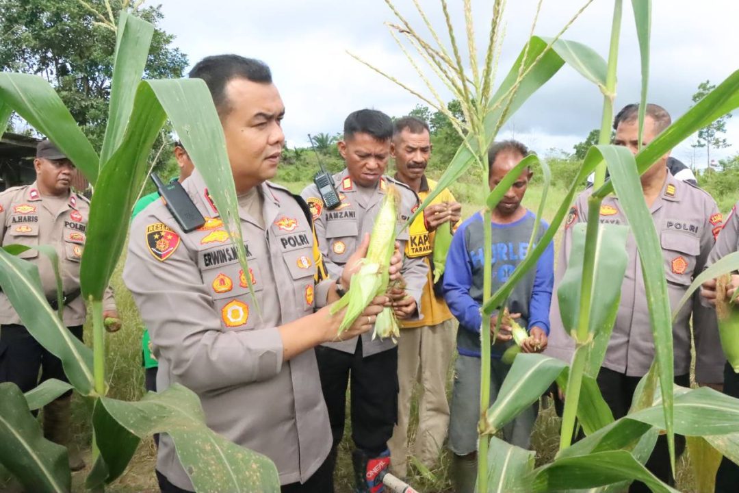 Kegiatan tersebut kini mencapai tahap panen. Kamis (3/4), Kapolres Tarakan AKBP Erwin S Manik, S.H., S.I.K., M.H., bersama Kapolsek Tarakan Utara AKP Jamzani, S.H., dan anggota Kelompok Tani Flora Fauna Mandiri, melaksanakan panen jagung yang ditanam tiga bulan lalu di lahan milik kelompok tani tersebut. Kegiatan ini selain untuk memanfaatkan lahan yang ada, juga bertujuan mendukung ketahanan pangan di wilayah Kota Tarakan.